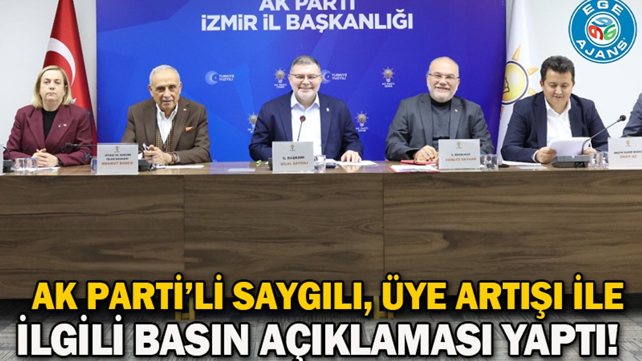 AK Parti İzmir İl Başkanı Bilal Saygılı, yaptığı basın açıklamasında, AK Parti’nin üye sayısının 664 bin 568 artarak 11 milyon 543 bin 301’e ulaştığını belirterek, ‘’Genel Başkanımız ve Cumhurbaşkanımız Recep Tayyip Erdoğan’ın liderliğinde geçen iktidar yılları boyunca AK Parti, siyaseti kapalı salonlardan değil; milletin içinde, milletle birlikte ve millet için yürütmüştür. CHP Türkiye genelinde yalnızca 22 bin yeni üye kazanırken, AK Parti İzmir İl Teşkilatı olarak İzmir’de 47 bin 927 yeni üyeyi partimize kazandırdık. Milletin partisi, milletle büyüyor. İzmir’de toplam üye sayımız 504 bin 568’e ulaşmıştır.’’ dedi.