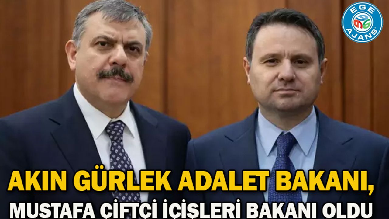 Yılmaz Tunç'tan boşalan Adalet Bakanlığı koltuğuna İstanbul Cumhuriyet Başsavcısı Akın Gürlek atandı.Ali Yerlikaya'dan boşalan İçişleri Bakanlığı koltuğuna ise Erzurum Valisi Mustafa Çiftçi getirildi.