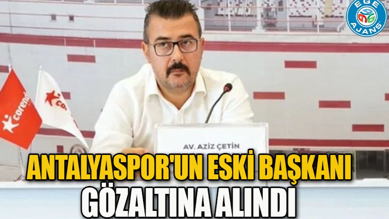 Eski Antalyaspor Kulübü Başkanı Avukat Aziz Çetin, bu sabah evinde gözaltına alındı. Antalya Büyükşehir Belediyesi ve Antalyaspor Kulübü arasında imzalanan protokol gereği kulübe aktarılması gereken yaklaşık 2 milyar TL'lik hafriyat parasıyla ilgili yolsuzluk iddiaları nedeniyle gözaltına alınan Aziz Çetin, KOM ekipleri tarafından Antalya İl Emniyet Müdürlüğü'ne götürüldü.