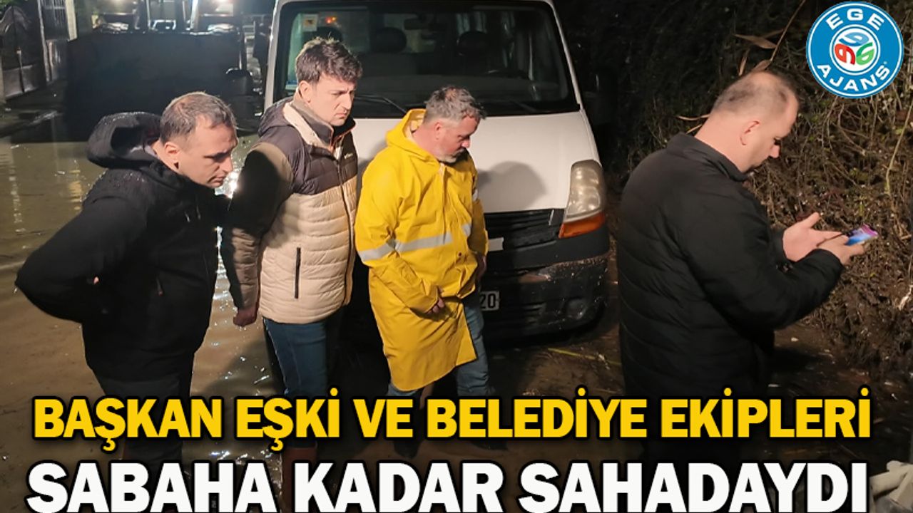 Bornova Belediye Başkanı Ömer Eşki, gece boyunca sahada çalışan ekiplere bizzat eşlik etti. İlgili birim müdürleriyle birlikte selden etkilenen bölgeleri gezen Başkan Eşki, sabahın ilk ışıklarına kadar çalışmaları yerinde takip etti.