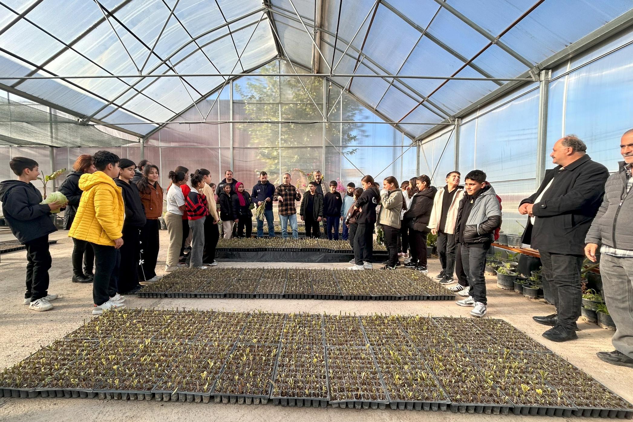 Etkinliğin devamında öğrenciler, Park ve Bahçeler Müdürlüğü'nün fidanlığını ziyaret etti. Fidanlıkta üretilen bitkiler tanıtılırken, bitki üretim süreci uygulamalı şekilde gösterildi. Belediye ekipleri, Bornova genelindeki peyzaj çalışmalarının bu fidanlıklarda yetiştirilen bitkilerle nasıl şekillendiğini anlatarak öğrencilere kapsamlı bir bilgilendirme sundu.
