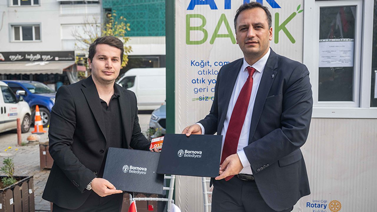 Bornova Belediyesi ile İzmir Çiğli Rotary Kulübü Derneği arasında imzalanan işbirliği protokolüyle hayata geçirilen Atık Bank Projesi, geri dönüştürülebilir atıkların toplanmasını, doğal kaynak kullanımının azaltılmasını,halkın geri dönüşüme aktif dahil edilmesini ve döngüsel ekonominin güçlendirilmesini amaçlıyor.