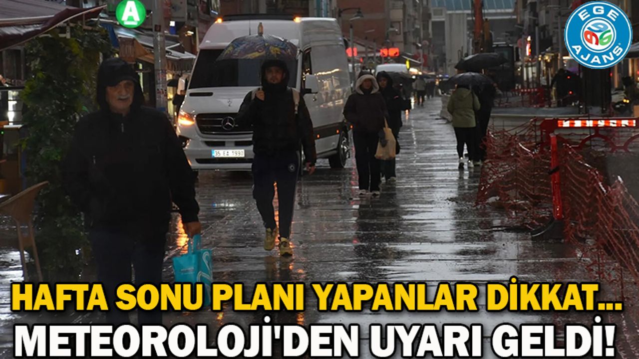 Meteoroloji Genel Müdürlüğü, İzmir için kuvvetli gök gürültülü sağanak yağış uyarısında bulundu. İzmir Bölge Tahmin ve Erken Uyarı Merkezi tarafından yapılan açıklamada, 31 Ocak Cumartesi günü kent genelinde yerel olarak kuvvetli yağış beklendiği bildirildi.