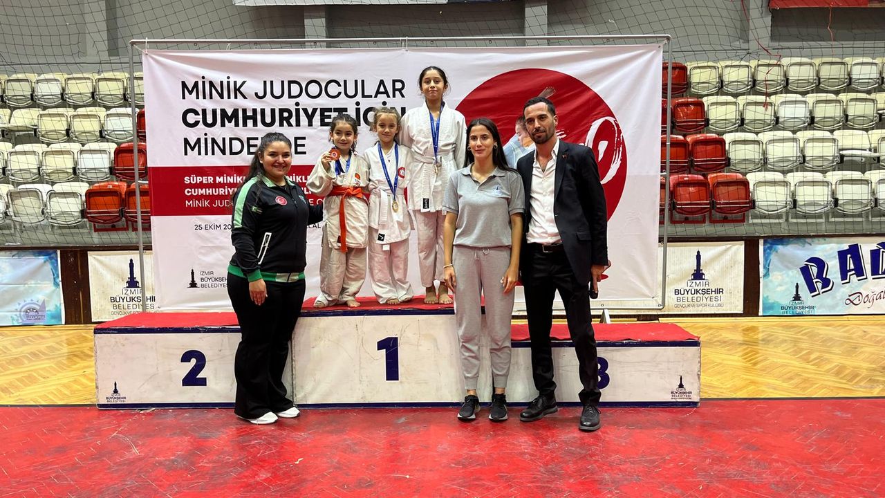 Konak Belediyespor bünyesinde ilk kez kurulan ve antrenör Münir Tunç eşliğinde çalışmalarını sürdüren judo takımının minikleri, İzmir Büyükşehir Belediyesi tarafından Cumhuriyet’in 102’nci yılı onuruna düzenlenen Süper Minikler ve Minikler Judo Turnuvası’na başarılarıyla damga vurdu. Birbirinden çekişmeli müsabakalara sahne olan Süper Minikler Turnuvası’nda, Konak Belediyespor formasıyla yarışan Fatma Şahin altın, Yağmur Kadim gümüş, Lana Şahin, Umay Denizci, Alimenur Akkuş ve Zehra Aksay ise bronz madalya kazandı. Minikler Turnuvası’nda mücadele eden Deniz Yıldız ise bronz madalya elde etti. Azim ve performanslarıyla göz dolduran minik sporcular, 10 kulüpten yaklaşık 200 minik judocunun yarıştığı turnuvadan biri altın olmak üzere 7 madalyayla ayrıldı.