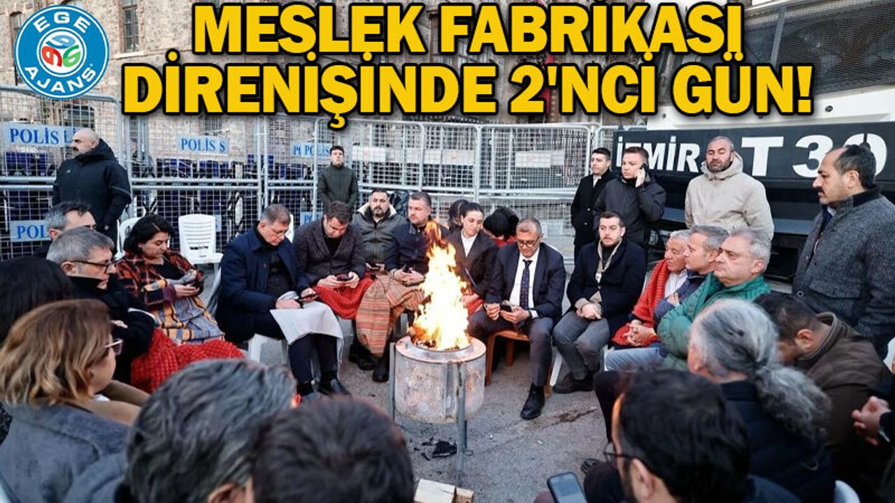 Mülkiyeti İzmir Büyükşehir Belediyesi'ne ait olan Meslek Fabrikası binasına Vakıflar Bölge Müdürlüğü tarafından el konulmasının ardından, İzmir Büyükşehir Belediye Başkanı Dr. Cemil Tugay'ın öncülüğünde dün başlayan direniş devam ediyor. Gece boyunca Meslek Fabrikası binası önünden bir an olsun ayrılmayan ve sandalye üzerinde sabaha kadar nöbet tutan Başkan Tugay'a destek de büyüyor. İzmir Büyükşehir Belediyesi çalışanlarının yanı sıra binlerce İzmirlinin de destek verdiği direnişe, bu sabah saatlerinde CHP Genel Başkan Yardımcısı Güldem Atabay da katıldı. Atabay, Başkan Tugay ile fabrika önünde buluşarak oturma eylemine eşlik etti.