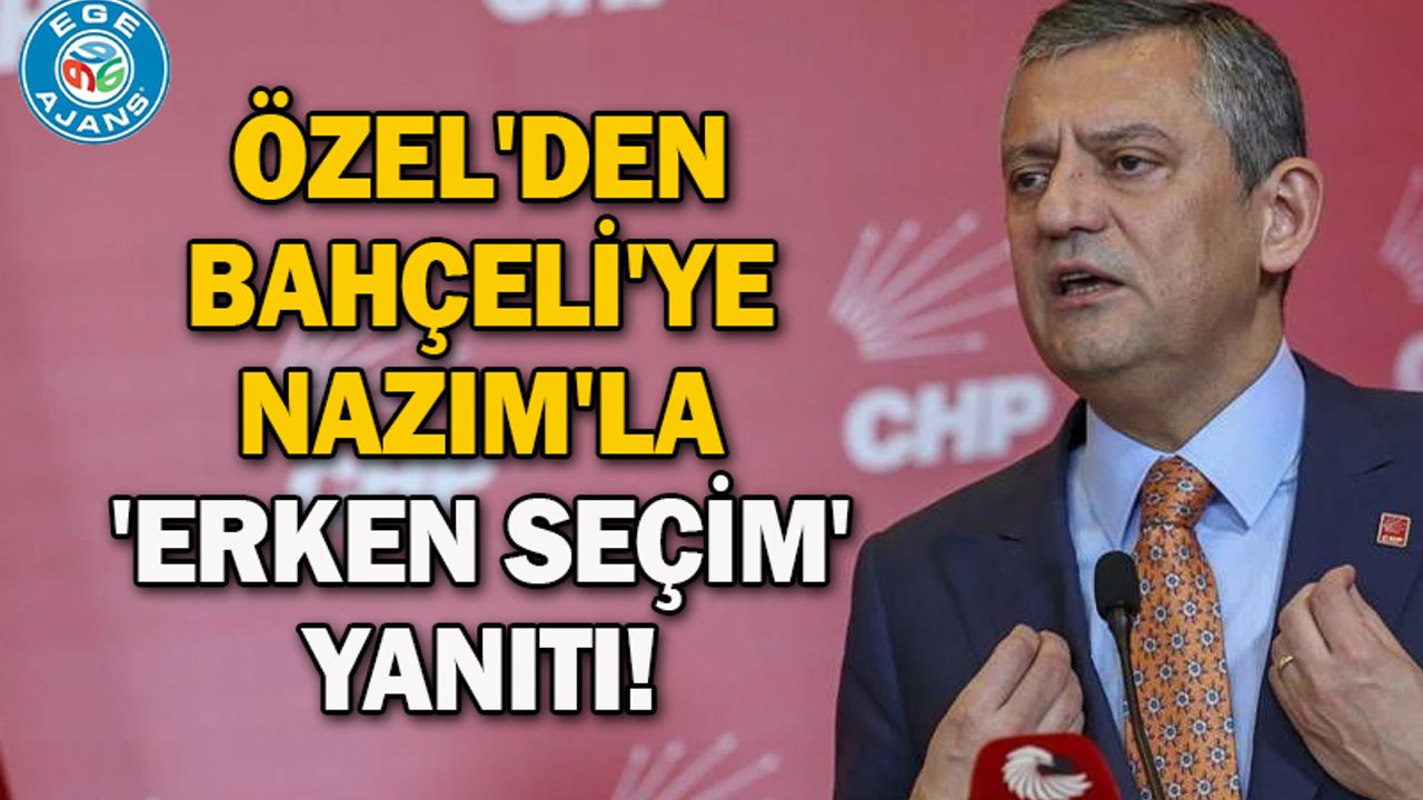 Özel, MHP lideri Bahçeli'nin erken seçim çağrılarına olumsuz yanıt verdiği demeciyle ilgili "Milletin bu iktidardan en rahatsız olduğu, şikayetlerinin en fazla olduğu, yoksulluğun dayanılmaz bir hale geldiği bu dönemde erken seçime kapıyı kapatıyor. O zaman ne diyelim? 'Biz bıraktığın gibiyiz, ustalaştık biraz daha taşı kırmakta, dostu düşmanı ayırmakta" dedi.